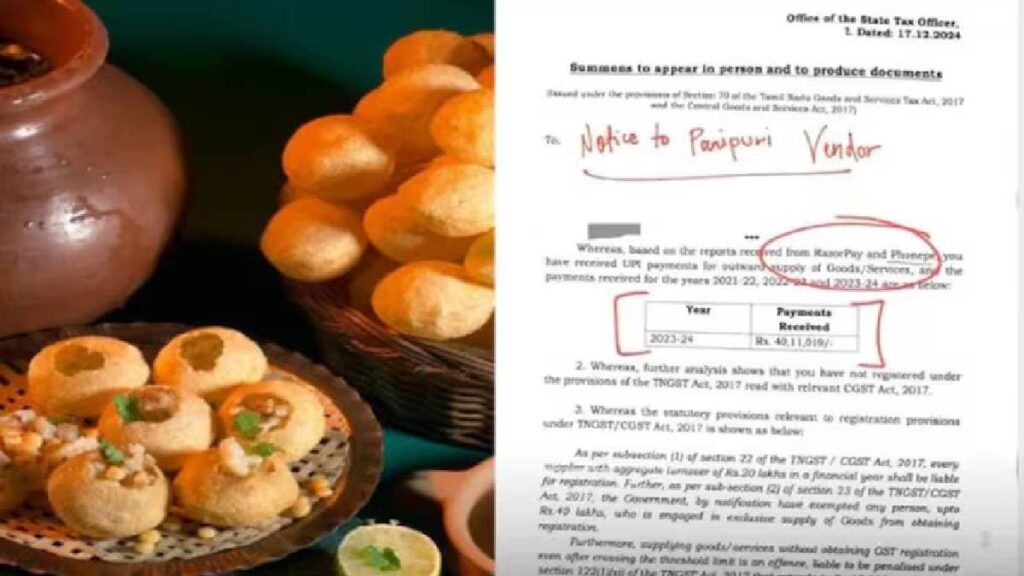 A person selling Pani-Puri has been summoned by the Goods and Services Tax Department (GST). The person allegedly earned more